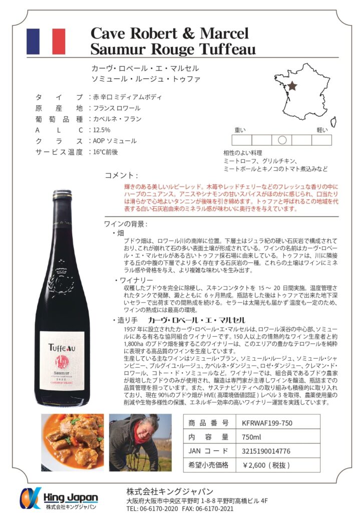 トップページ > 商品情報 > ワイン > フランスワイン > カーヴ・ロベール・エ・マルセル ソミュール・ルージュ・トゥファ